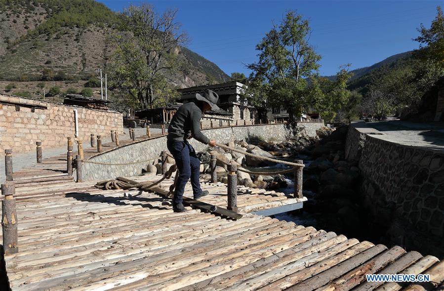 Photo taken on Nov. 7, 2017 shows Ranyang Village in Daocheng County of southwest China's Sichuan Province. There are 186 people of 33 households living in the Tibetan village. Luzhou City of Sichuan provided counterpart assistance to Ranyang Village since September of 2016 in poverty alleviation work. Villagers witnessed great changes at the typical and traditional Tibetan village after construction of more than one year. (Xinhua/Jiang Hongjing)