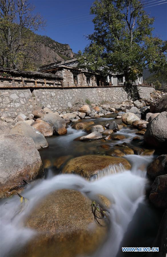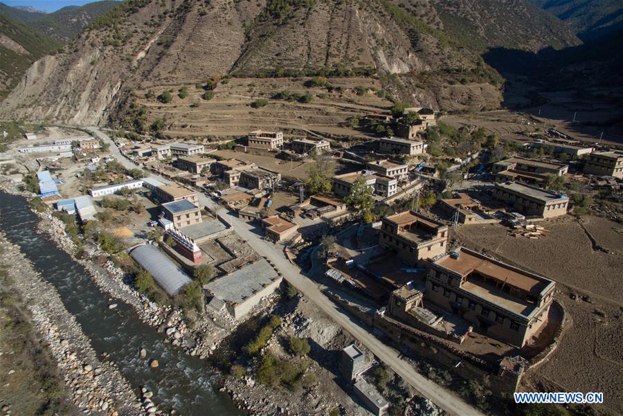 Photo taken on Nov. 7, 2017 shows the Ranyang Village in Daocheng County of southwest China's Sichuan Province. There are 186 people of 33 households living in the Tibetan village. Luzhou City of Sichuan provided counterpart assistance to Ranyang Village since September of 2016 in poverty alleviation work. Villagers witnessed great changes at the typical and traditional Tibetan village after construction of more than one year. (Xinhua/Jiang Hongjing)
